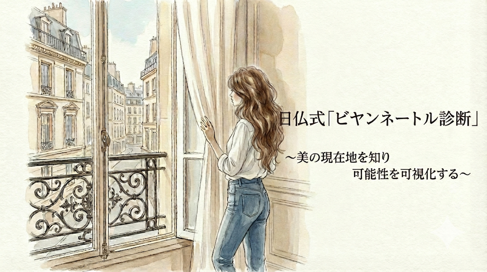 本診断では、フランス式の審美眼で、あなたの「骨格・肌質」という本来の魅力と、それを曇らせている「マインドブロック」を可視化します。
